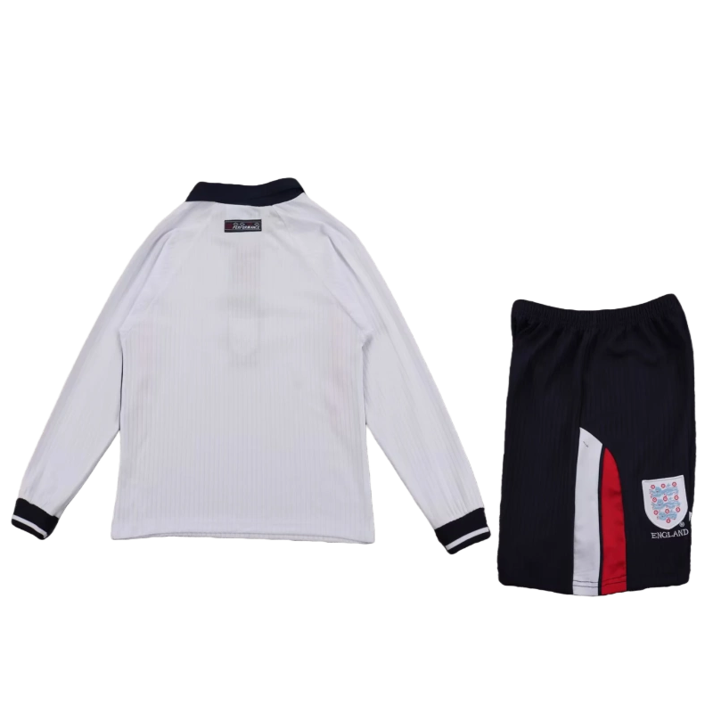 1998 England Long Sleeve World cup Retro Soccer jersey Home Kids Kit jersey+Shorts