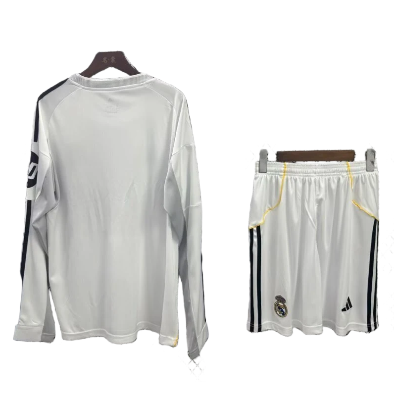 2025-26 Real Madrid Home Kids Long Sleeve Soccer jersey Kit Jersey+Shorts