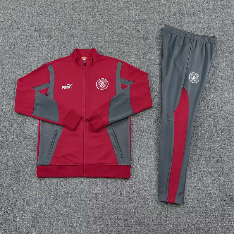 25-26 Manchester City Red Football Tracksuits Long Jacket Suits
