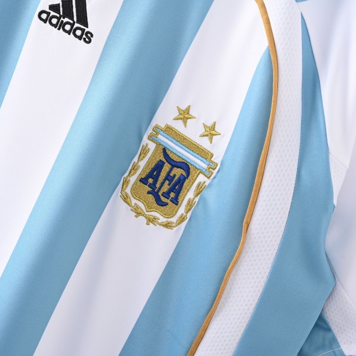 Argentina Retro Jersey Home World Cup 2006 Model Year: 2006 Confederate: CONMEBOL Country: Argentina-National Team Material: Polyester Type of Brand Logo: Embroidered Type of Team Badge: Sewn On Color: Blue&White Version: Replica Designed For: MenDETAIL: