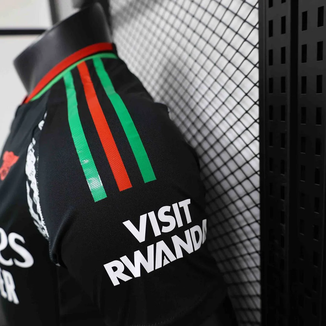 Arsenal Away Jersey Player Version 2024/25Model Year: 24-25Country and League: England-Premier LeagueMaterial: PolyesterType of Brand Logo: Heat PressType of Team Badge: Heat PressColor: BlackVersion: Player VersionDesigned For: Men